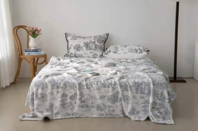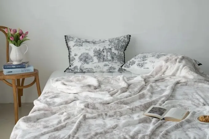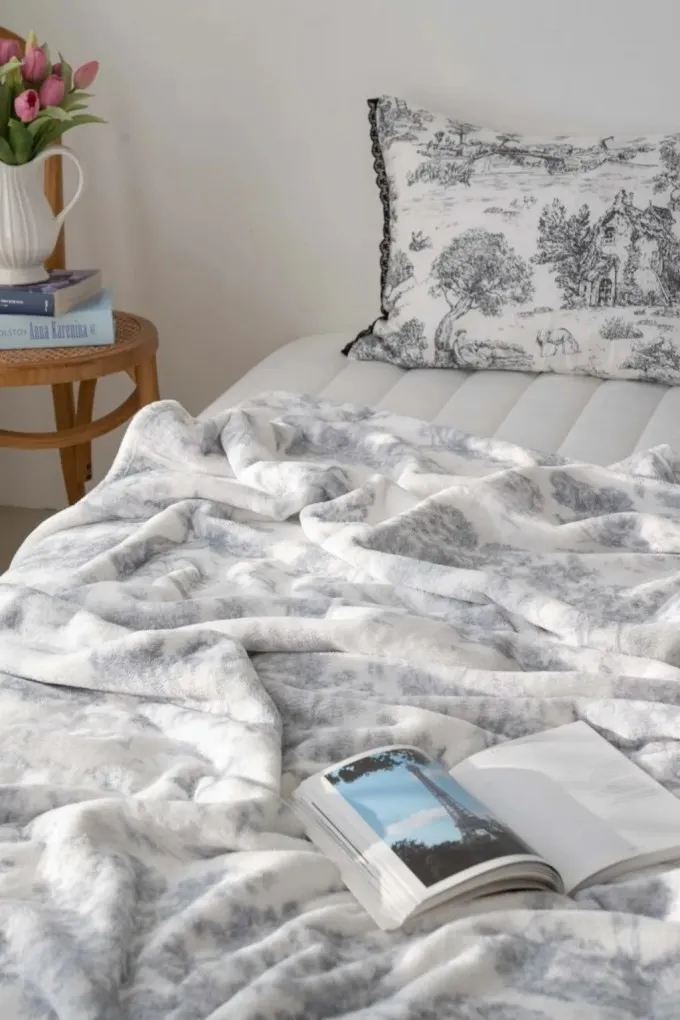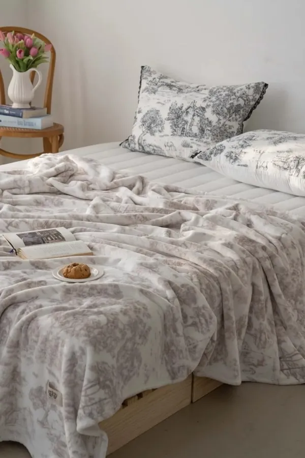 ▸ 居家百搭美感,生活中的柔焦濾鏡 無論鋪在床上、沙發上或當膝毯使用,都能讓空間增添法式詩意氛圍。