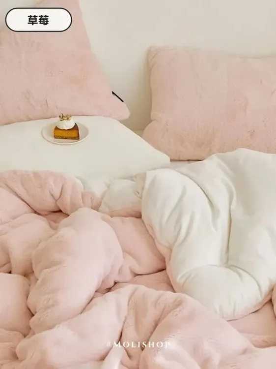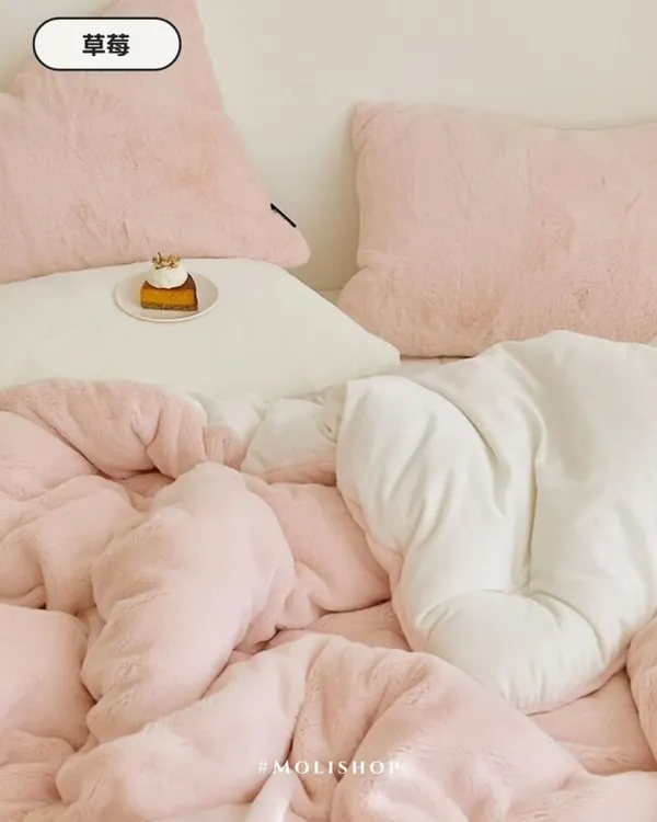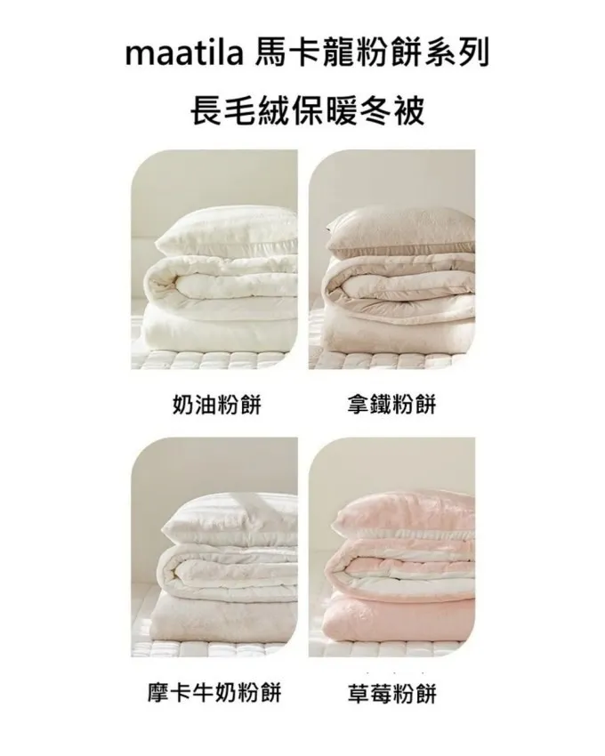 這條馬卡龍粉餅冬被用 不同絨度的極細纖維,