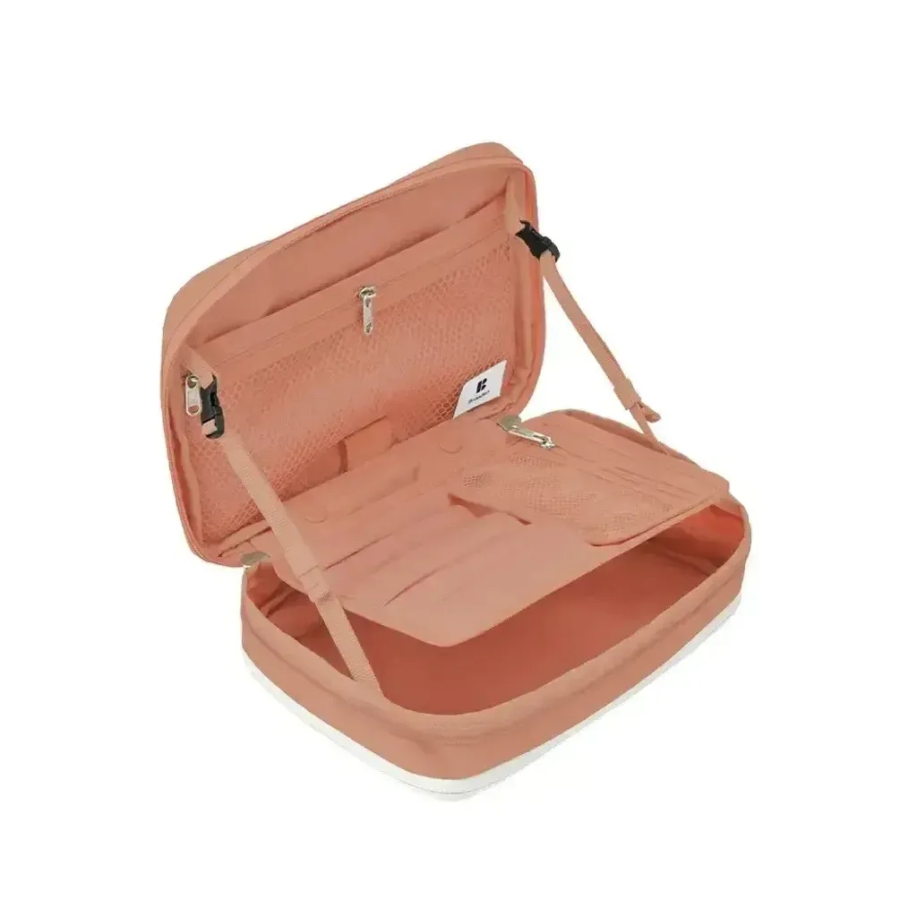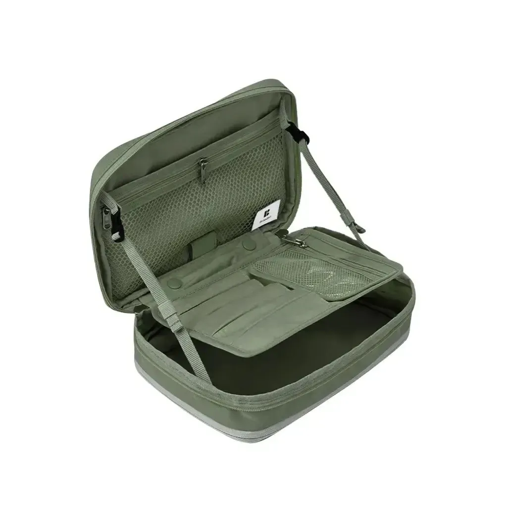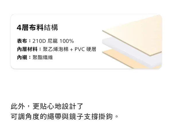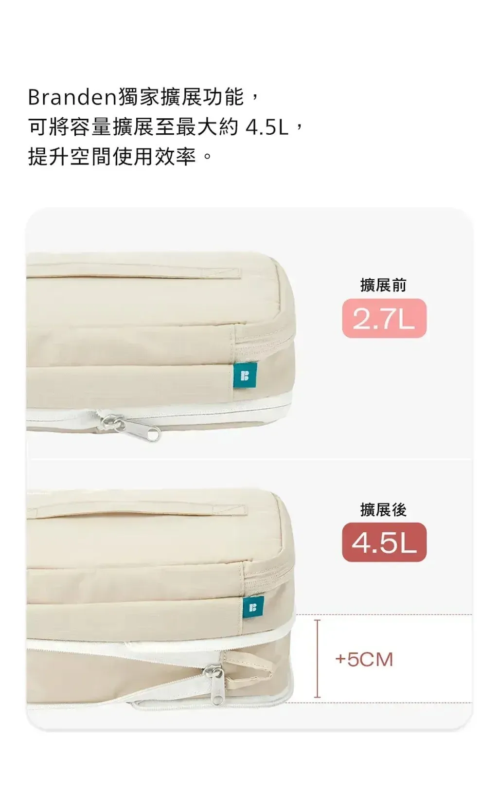 💄Branden 擴展型化妝包 大容量 × 多層收納 × 一拉擴展 = 行動化妝台! 從簡約外型到細膩內裝,專為每位愛整齊的你設計。 - 🔹 多重收納結構,井然有序不凌亂 讓化妝包不再只是「堆疊大雜燴」,從彩妝品、保養品到刷具與面膜,全部都有專屬空間: ✅ 主收納區:底部空間可收納各式罐裝保養、粉餅、香水、隔離乳等 ✅ 雙層內蓋網袋:適合放面膜、化妝棉、棉花棒、小鏡子 ✅ 可拆式刷具專區:5格刷具筆位 + 拉鍊收納袋,可獨立使用 ✅ 隱藏式斜口袋:面膜片或薄型化妝品可整齊收納不變形 - 🔹 可擴充設計,2.7L ➝ 4.5L 輕鬆轉換 ✔️ 收納前容量為2.7L,適合日常、短途外出 ✔️ 拉開下層擴展拉鍊,即可升級至4.5L! ✔️ 擴展厚度+5cm,讓你出遊、出差也能一包裝齊全彩妝保養 只裝重點的「精簡派」或瓶瓶罐罐全都要的「實用派」,這一包都能搞定! - 🔹 展開即用,變身迷你化妝台 打開後就像一座 可站立的行動化妝台,桌上、床邊、洗手台隨開即用 上蓋配有 雙邊調節繩,可穩定撐起角度不傾倒 可搭配隨身小鏡使用,無論在旅館、辦公室或外出場合都能從容上妝補妝 - 🔹 材質講究,輕盈又防水防汙 ☔ 表布:210D尼龍 Ripstop ➝ 抗撕裂、防潑水 💧 雙層生活防水塗層 ➝ 化妝水潑濕可直接擦拭 🧽 可拆刷具袋採用TPU防污材質,粉底液也不怕沾染 - 🔹 色系質感滿分|5色可選 🟤 杏色|軍綠|⚫ 深灰|🧡 磚粉|🔵 天空藍 簡約柔和,無論通勤還是旅行都百搭。