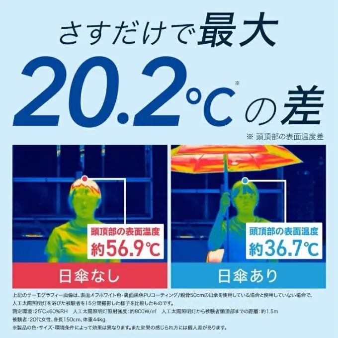 撐開傘下頭部表面溫度瞬間狂降約20度