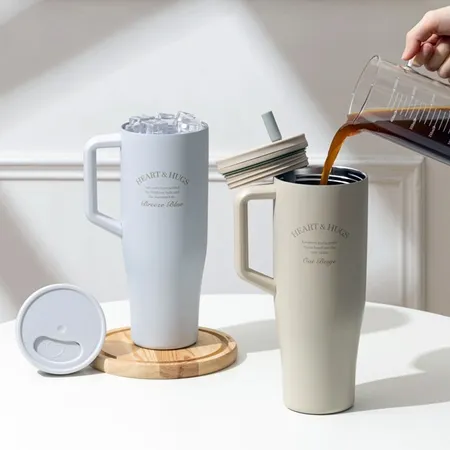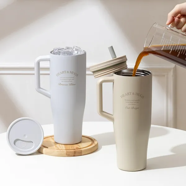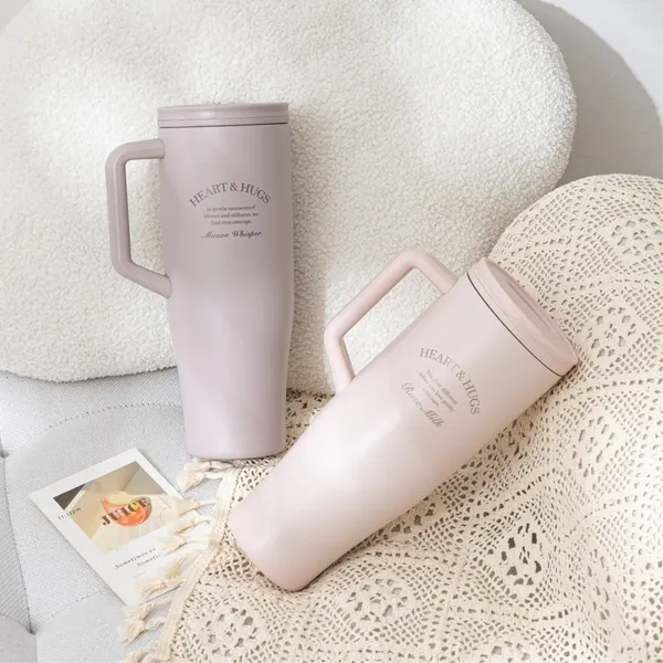 【雙杯組】韓系溫柔發電所不鏽鋼隨行手把杯1150ml(四色)_兩入_C04