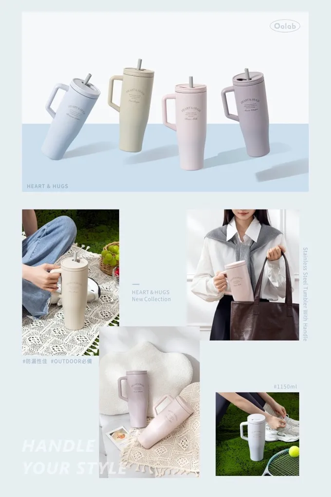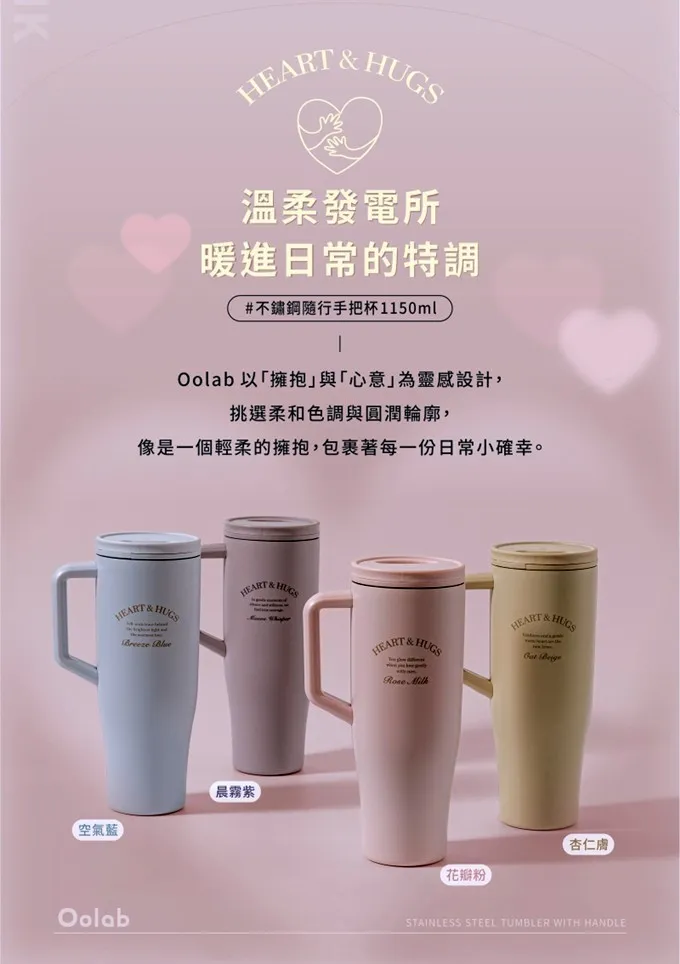 【單杯組】韓系溫柔發電所不鏽鋼隨行手把杯1150ml(四色)_C03