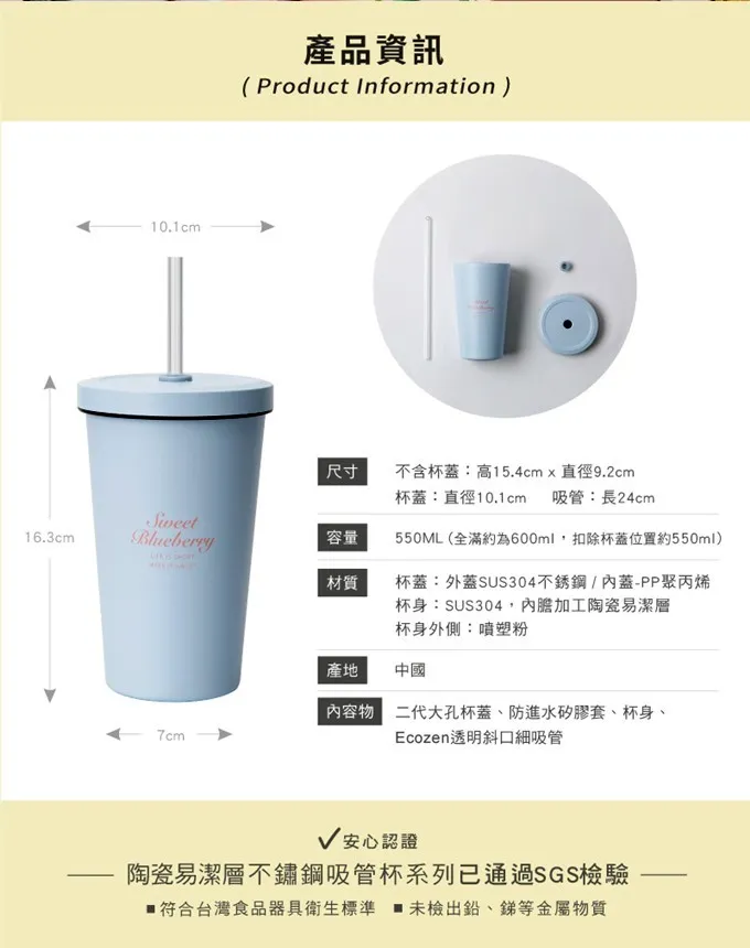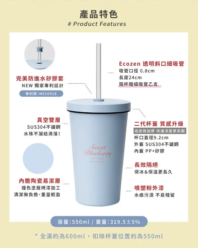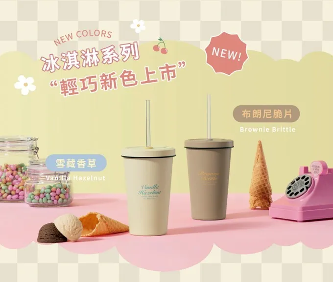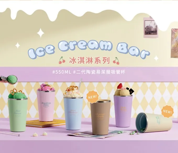 【經典單杯組】冰淇淋系列不鏽鋼吸管杯550ml(兩色)_C08