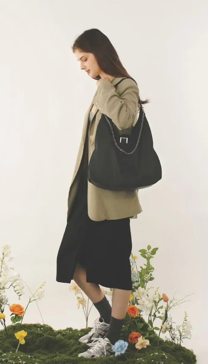 【韓國】氣質鏈條抓皺肩背包_C19