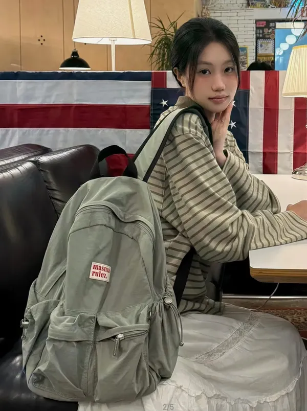 【韓國】輕質感雙口袋日常輕便後背包_C18