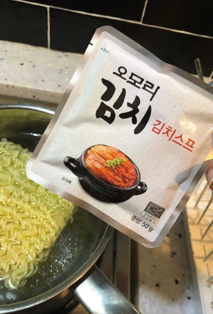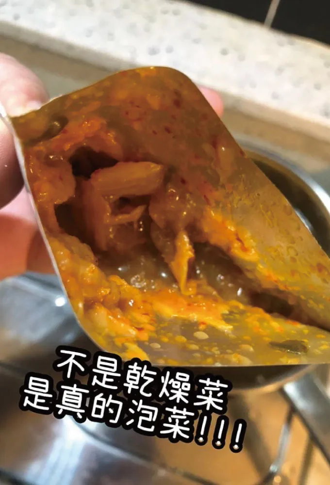 我們想說要打開煮來吃的時候,撕開包裝,沒想到裡頭居然有一大包含湯汁的辣泡菜❗️