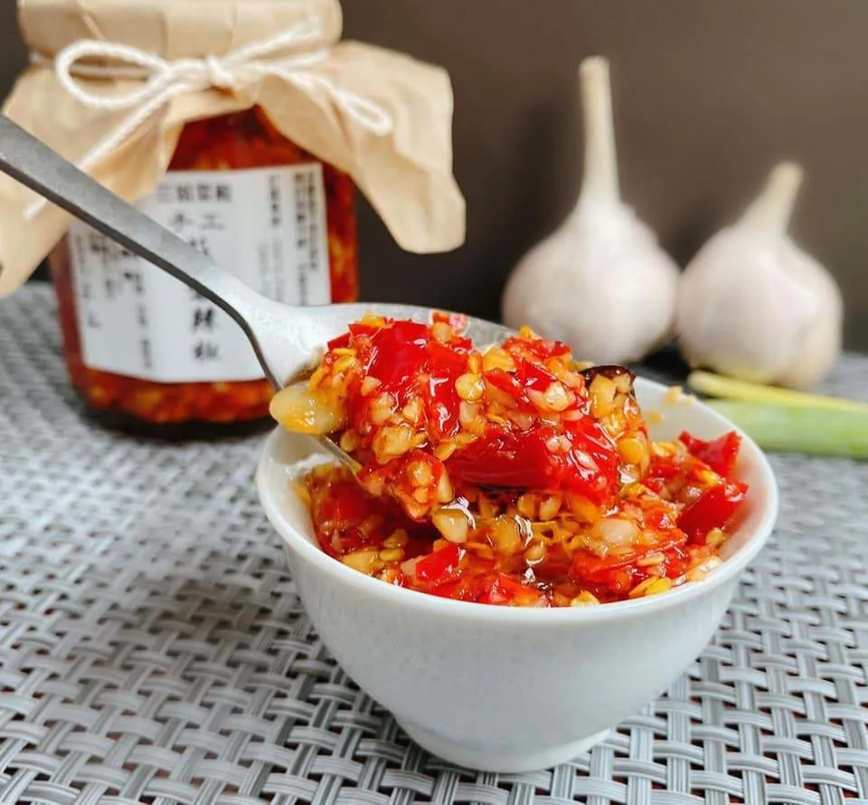 ➤產品特色:以朝天椒與大辣椒為主軸,蒜頭大量切碎加入拌炒,添加些許黑豆鼓提味,非常適合拌麵、飯、水餃,還可以入鍋炒菜唷。