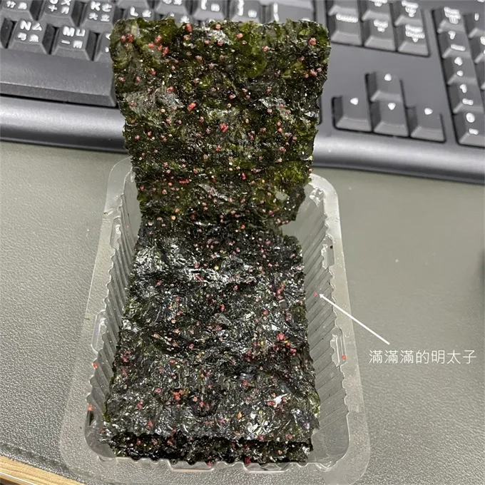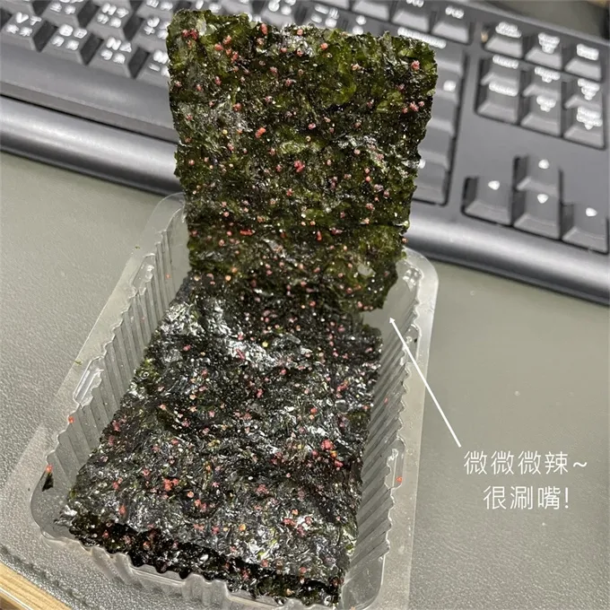 先是「喀滋!」一聲,薄脆的海苔瞬間碎開